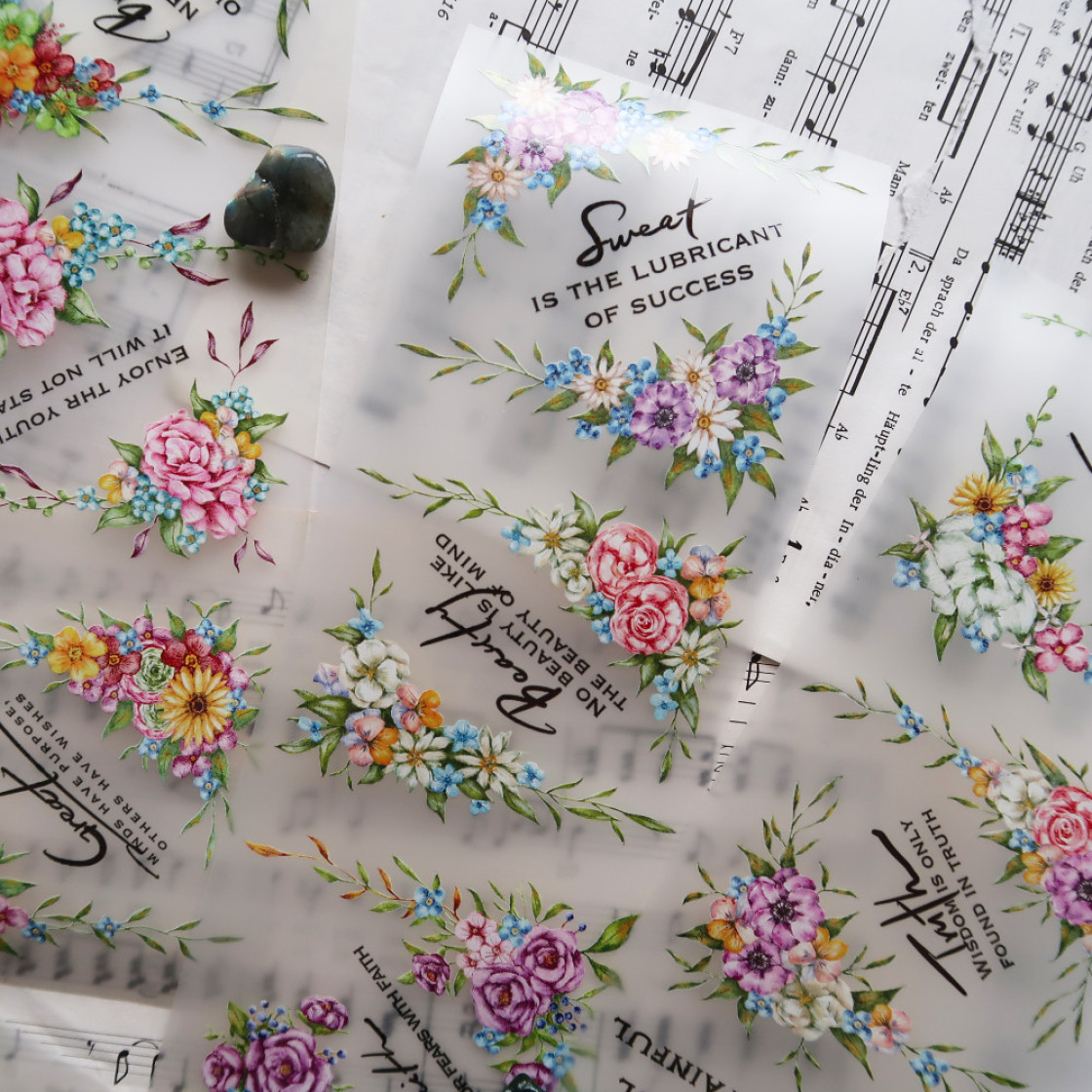 Hier verkaufe ich je 1 Loop dieses PET Tapes. Jeder Loop ist ca. 90 cm lang und beinhaltet die abgebildeten Blumenrahmen. Das Tape ist matt.