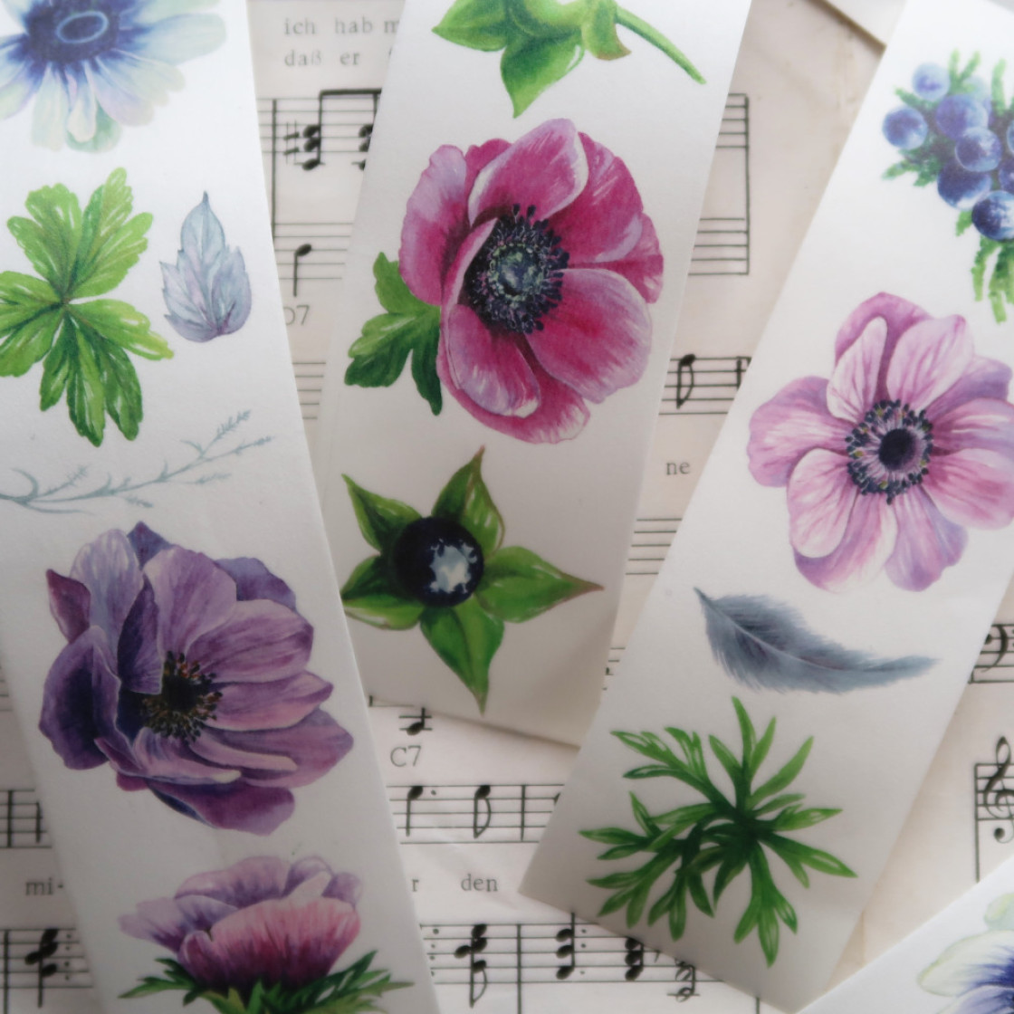 Hier verkaufe ich je 1 Loop dieses Washi Tapes auf Trägerpapier. Jeder Loop ist ca. 60 cm lang und beinhaltet die abgebildeten Blumen.